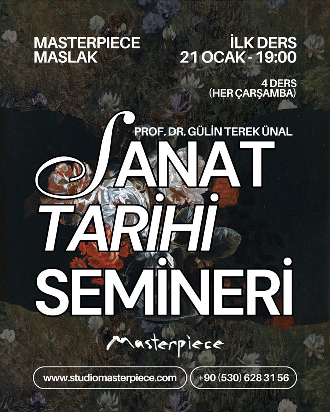 Sanat alanında uzman Prof. Dr. Gülin Terek Ünal'ın yönettiği seminer, sanatseverler için bilgi birikimini artıran, görsel okuma becerilerini geliştiren ve sanata olan bakış açısını zenginleştiren bir fırsat sunar. Ön bilgi gerektirmez.